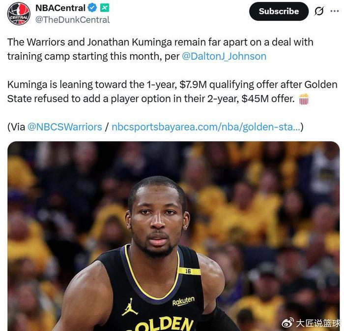 库明加团队希望得到一份长约与基石待遇,但勇士队并不愿意再继续长期培养库明加,只愿意提供给其一份2年4500万合同。