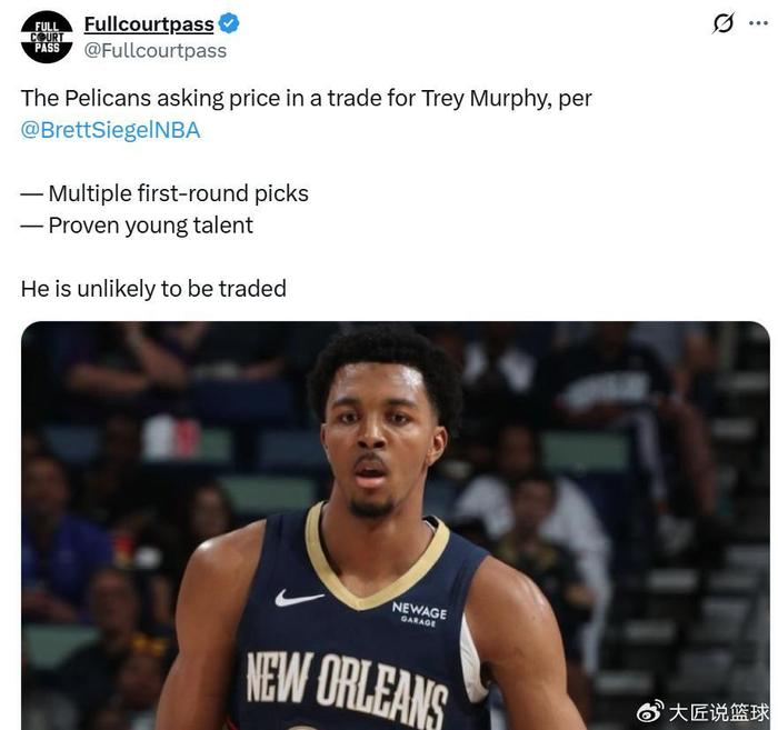 只不过,墨菲的交易要价较高,在休赛期之初鹈鹕队曾被曝出希望在墨菲交易中换回多枚首轮签外加具有前途的年轻球员。